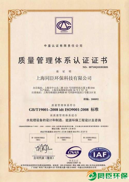 2010年1月7日,上海中鉴认证中心审核小组专家对我公司进行了为期一天的ISO质量体系外审复评。经过审核,专家们一致评定,我公司的质量管理体系文件符合ISO9001:2008《质量管理体系要求》,最高管理者指定的质量方针符合企业的经营宗旨,相关职能层次上也建立了相应的质量目标,我公司顺利完成了ISO90012008质量管理体系认证工作。