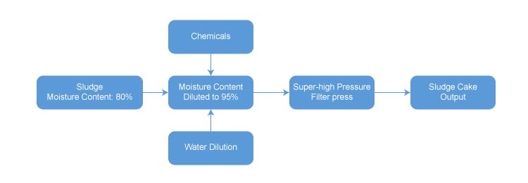 The core equipment —— Techase Super-high Pressure Filter Press has excellent performance. It has high pressing force, thick sludge cake and short operation cycle.